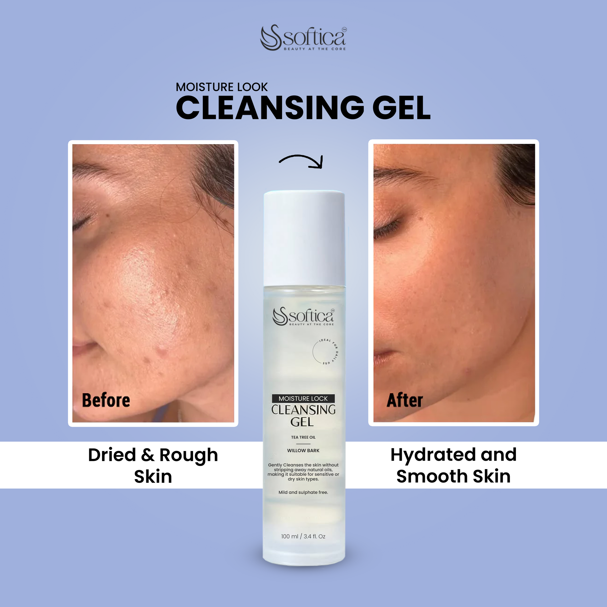 Refresh and purify your skin with our Moisture Lock Cleansing Gel, that can be used daily as a Face Wash, formulated to deeply cleanse, remove excess oil, and help prevent breakouts while keeping your skin balanced and hydrated.